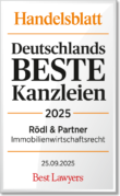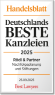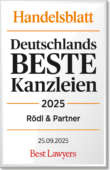 - Rödl & Partner mehrfach im Handelsblatt-/Best Lawyers-Ranking „Deutschlands beste Kanzleien 2025“ ausgezeichnet (Weitere Informationen)