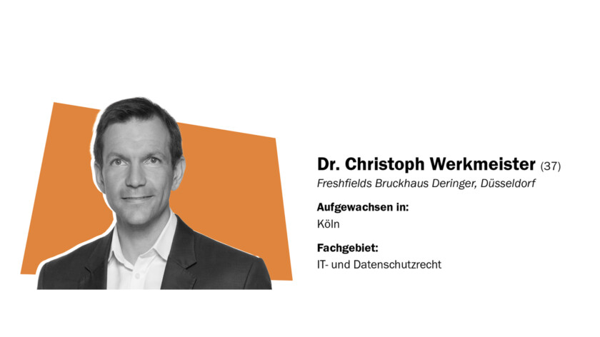 Jeder kennt sie: Die lästigen Banner, die aufpoppen, sobald man eine Website öffnet. Routinemäßig akzeptiert man die Benachrichtigungen. Aber die wenigsten wissen, womit sie sich überhaupt einverstanden erklären. Christoph Werkmeister weiß es. Und nicht nur das. Als globaler Co-Leiter der Daten- und Technologiepraxis bei Freshfields Bruckhaus Deringer berät er zu grenzüberschreitenden IT- und Datenschutzprojekten. Darunter fallen einige der weltweit größten Daten- und Cybervorfälle, aber auch technologielastige M&A-Transaktionen. Zusätzlich beweist sich Werkmeister, der 2021 zum Partner ernannt wurde, regelmäßig in streitigen Verfahren vor Regulierungsbehörden und Gerichten. Bereits während seiner Studienzeit kristallisierte sich sein Schwerpunkt im Telekommunikationssektor heraus. Parallel zum Studium gründete er ein juristisches Ausbildungsportal als Onlineplattform.