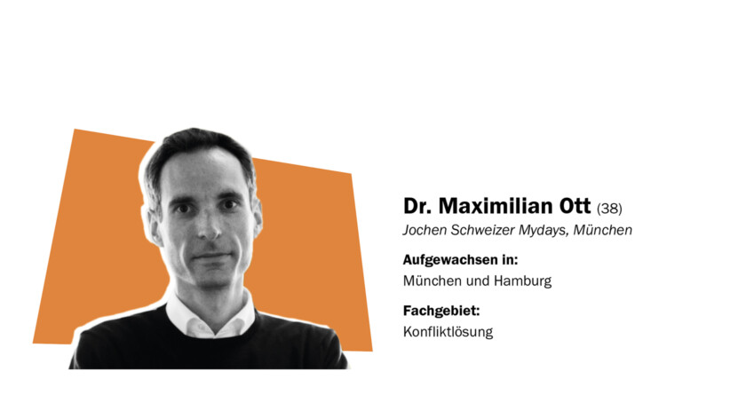 Unternehmer sein, das wollte Maximilian Ott schon immer. Als er in der Schule mal gefragt wurde, ob er bei einem Schülerunternehmen mitmacht, war seine Antwort: Ja, aber nur, wenn ich Vorstandsvorsitzender werde. Wurde er. Unternehmen findet Ott noch heute gut, vor allem, wenn man direkt oben einsteigt. Er ist der erste Jurist in einer Familie, in der es ansonsten beruflich viel um Zähne geht, vom Zahnarzt bis zum Zahntechniker. Nach dem Studium war er in mehreren Rechtsabteilungen tätig, Siemens, BMW, Burger King. Womöglich wäre Ott gar nicht in die Kanzleiwelt gewechselt, wenn er nicht 2010 bei Burger King den heutigen Eversheds-Litigation-Chef Joos Hellert kennen gelernt hätte, der ihn kurz darauf zu Eversheds holte. Von dort wechselte Ott 2018 zu Bub Gauweiler – kurz bevor die legendäre Kanzlei zerbrach und sich die Namenspartner gegenseitig mit Klagen überzogen. Ott gehörte zum Gauweiler-Lager und stritt in dessen neuer Kanzlei unter anderem für BMW gegen den FC Bayern München und für Asklepios gegen den Landkreis Goslar. Seit 2021 ist er General Counsel und Compliance Officer der Jochen Schweizer Mydays Group – und nebenbei, er kann das Prozessieren nicht lassen, Anwalt in eigener Kanzlei sowie Richter am Anwaltsgericht München.