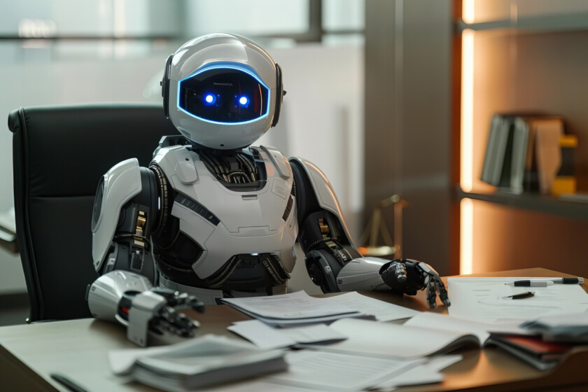Bis die KI wirkliche Top-Anwältinnen und -Anwälte ersetzen kann, mag noch manches Datenpaket die Glasfasern des Landes durchfließen. Was die KI aber bereits kann: darstellen, wie diese Zukunft aussehen könnte – zum Beispiel auf diesem KI-generierten Bild.